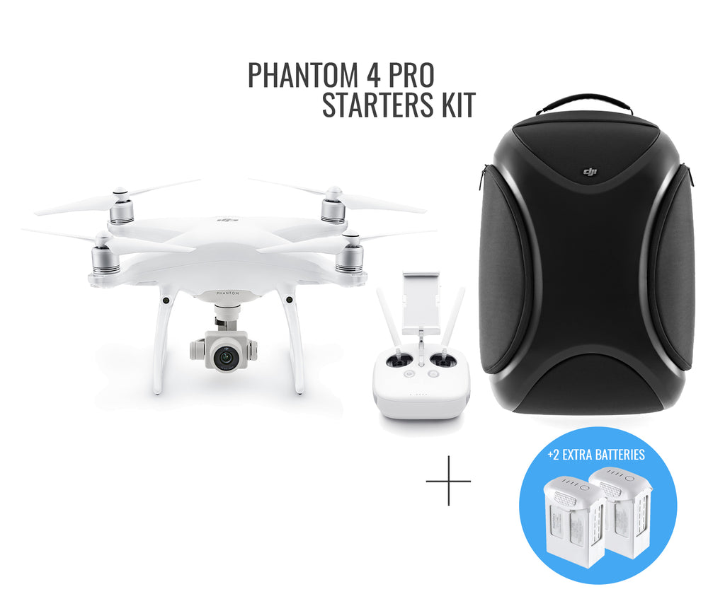 The Phantom 4 Pro V2.0 Starters Kit is great for the first time drone user. Safely stow away your entire drone and its contents in the DJI backpack. Three total Phantom 4 High Capacity Batteries ensures that you will have a minimum of an hour flight time. This will allow you to stay in the air much longer and never miss the perfect shot.